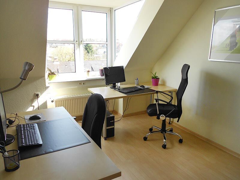Im Gewerbegebiet hat sich eine vielfältige Nachbarschaft angesiedelt, die Umgebung ist angenehm ruhig und von Grünflächen durchzogen. So lässt es sich lernen und arbeiten: Das Fachwerk, die Giebelfenster und die hellen Möbel vermitteln Wärme und Gemütlichkeit, die moderne Ausstattung sorgt für professionelle Arbeitsatmosphäre. Der Schulungsraum in der zweiten Etage wird ergänzt durch eine kleine Bibliothek, eine Kinderecke und eine Teeküche. Für Pausen kann auch der separate Besprechungsraum genutzt werden. Wer sich einen Happen zu Essen besorgen möchte, kann sich im nahegelegenen Supermarkt etwas besorgen. Empfehlenswert ist auch der Mittagstisch im etwa 400 Meter entfernten Restaurant „Solstraatenhus“.