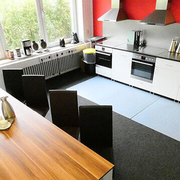 Eine große Glasfront bildet den Eingangsbereich des klassischen Bürokomplexes. Ihre Schulungsräume im Erdgeschoss sorgen mit großen Fenstern und farblichen Akzenten für eine angenehme Lernatmosphäre. Ihre Unterrichtszeit liegt zwischen 8 und 16:15 Uhr, aber natürlich sind Ihnen auch Pausen vergönnt. Stärken Sie sich in der vollausgestatteten Teilnehmerküche oder besorgen Sie sich auswärts einen Snack. In der Nähe finden Sie einen großen Supermarkt mit integriertem Café, eine Bäckerei sowie weitere Einkaufsmöglichkeiten. Und direkt gegenüber befindet sich ein angesagter Italiener.
